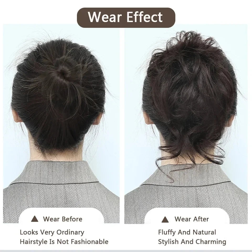 1. Easy to Use: Messy Wavy bun scrunchie synthetic hair, Perfect for adding volume and fullness to a bun or a ponytail,very comfortable and easy to use, elegant and lovely.