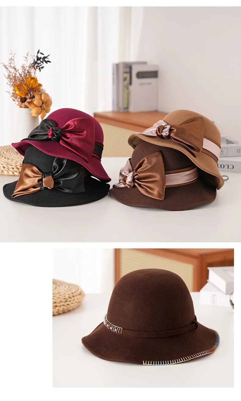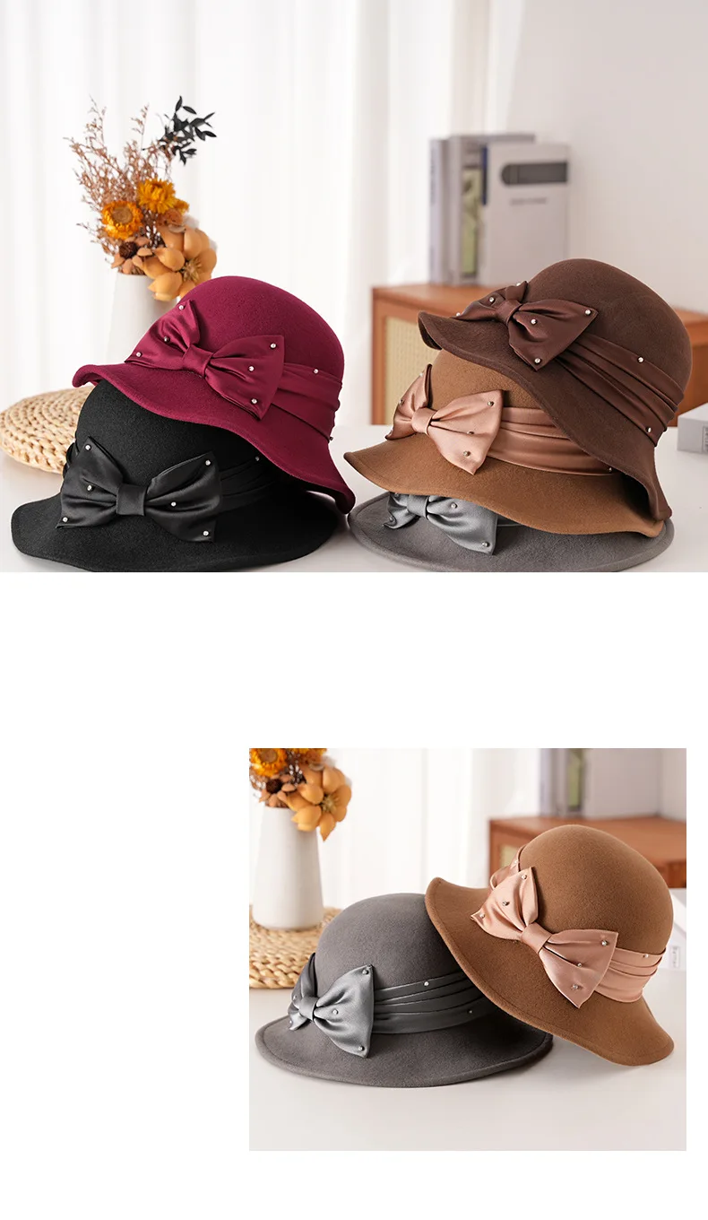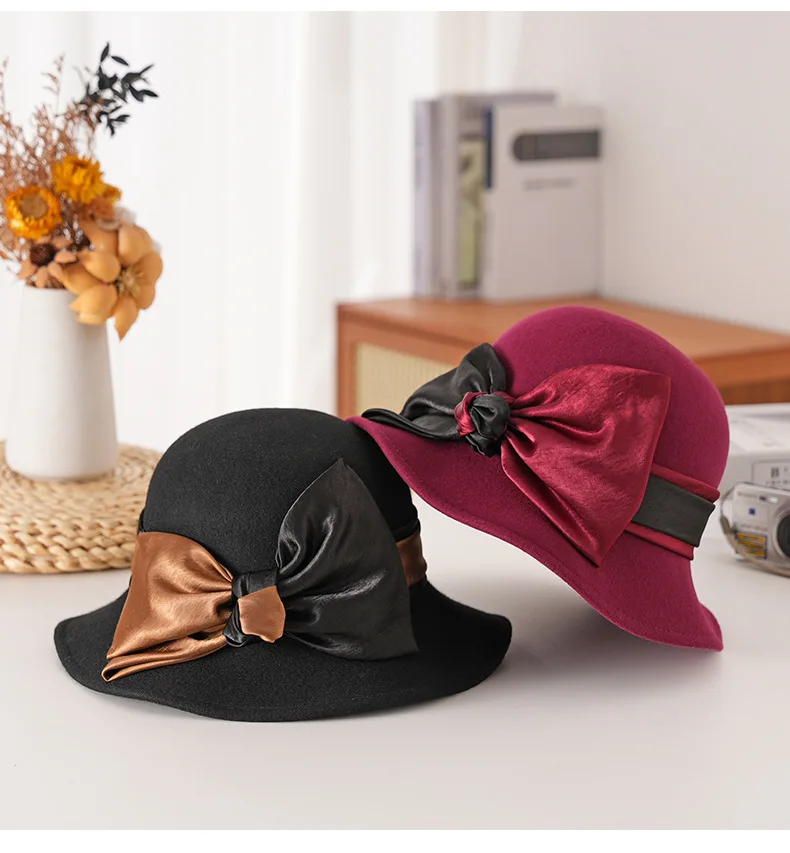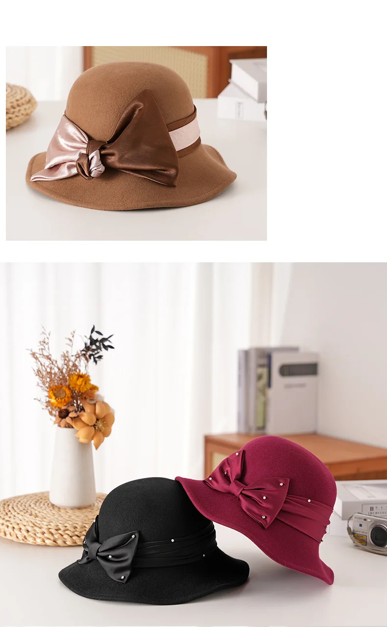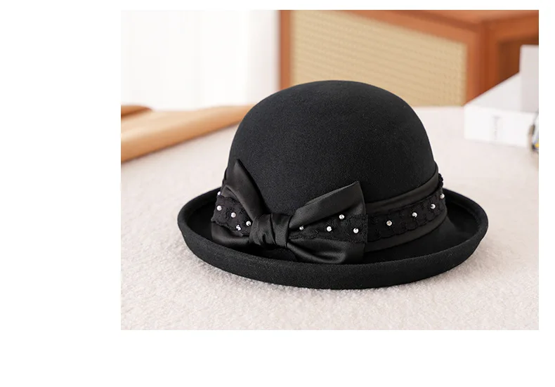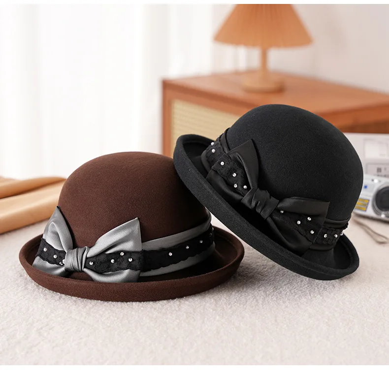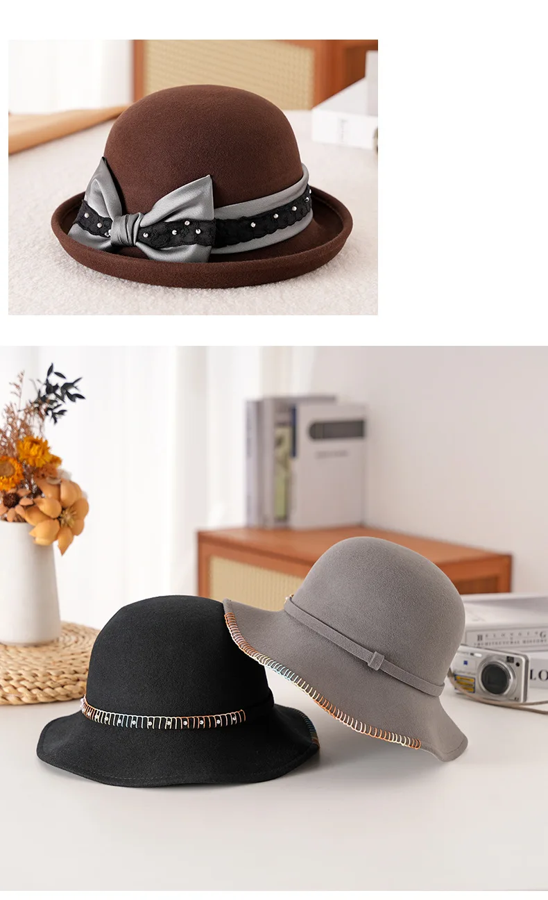 Elegant Woolen Hat for Women Vintage Fashionable Autumn Winter Stylish Noble Lady's Felted Cap Retro All-Match Bowl Hat