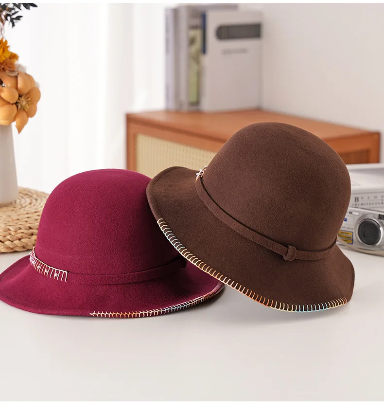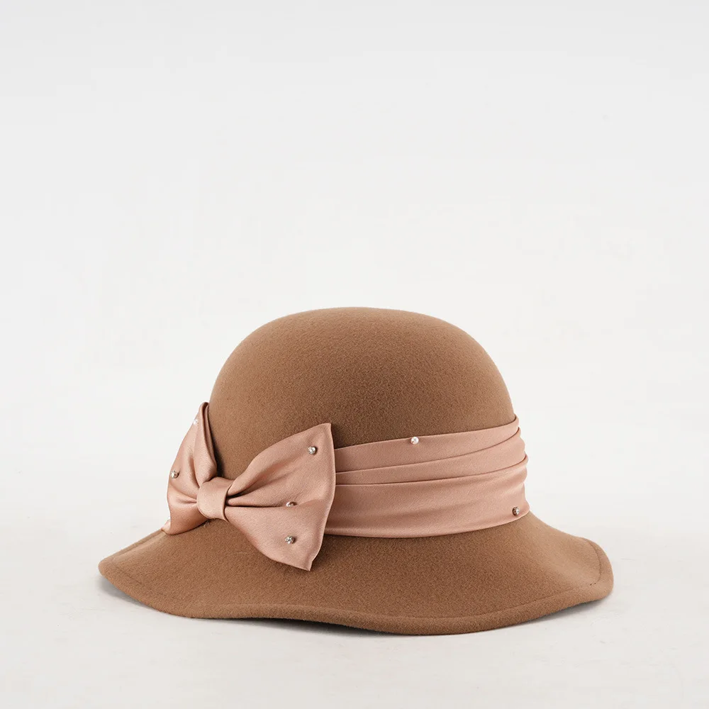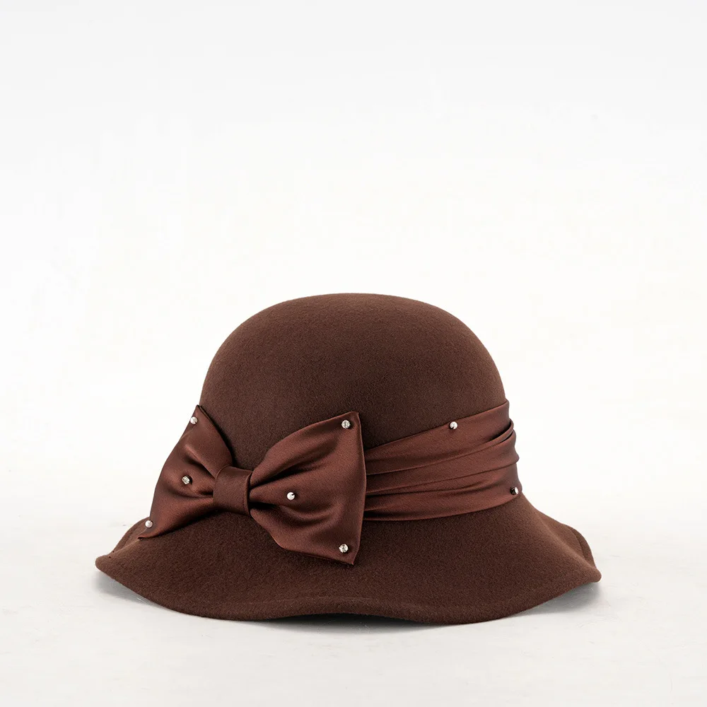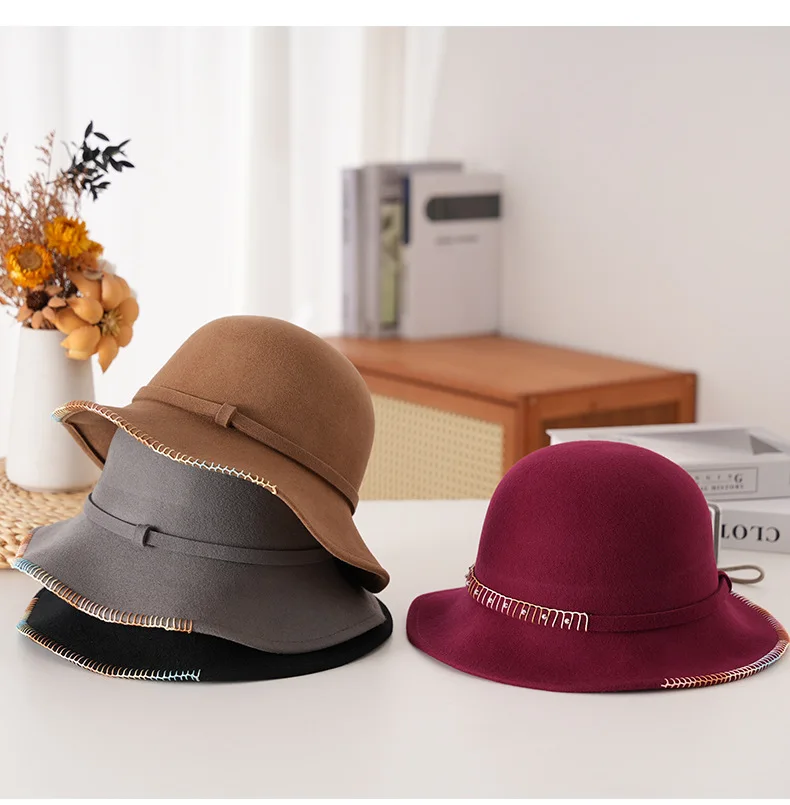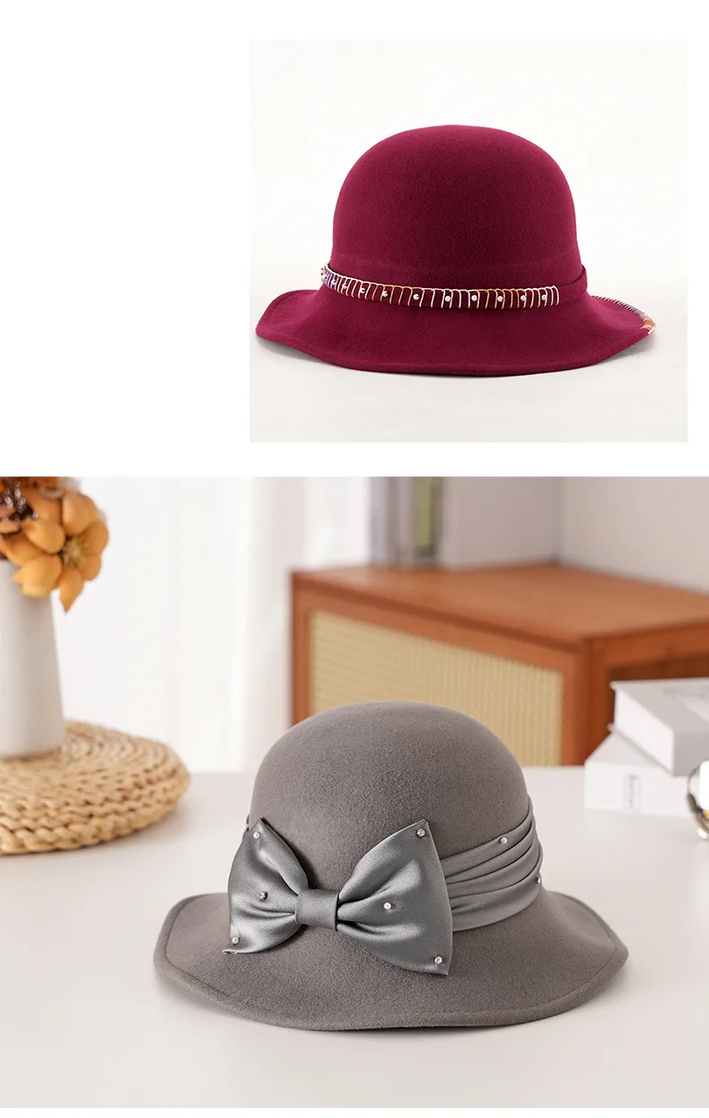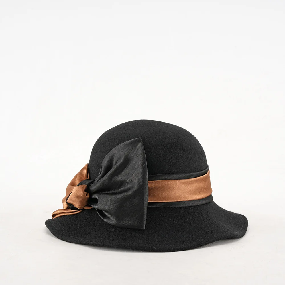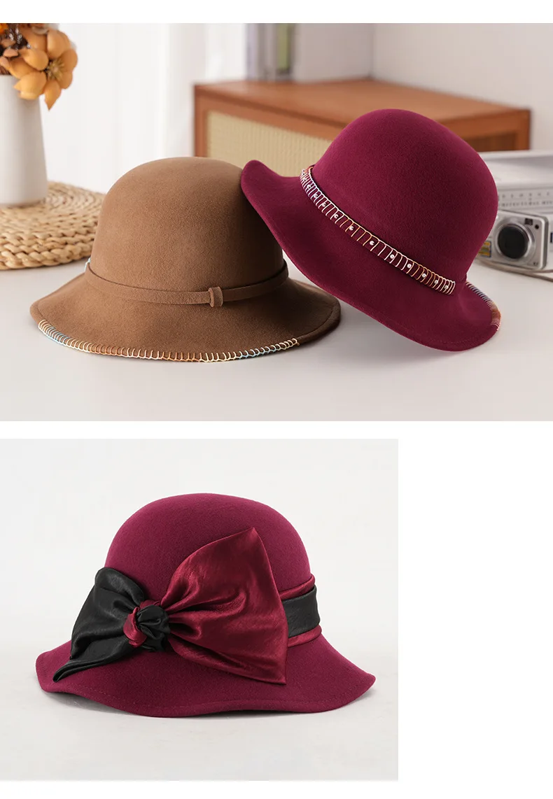 Elegant Woolen Hat for Women Vintage Fashionable Autumn Winter Stylish Noble Lady's Felted Cap Retro All-Match Bowl Hat